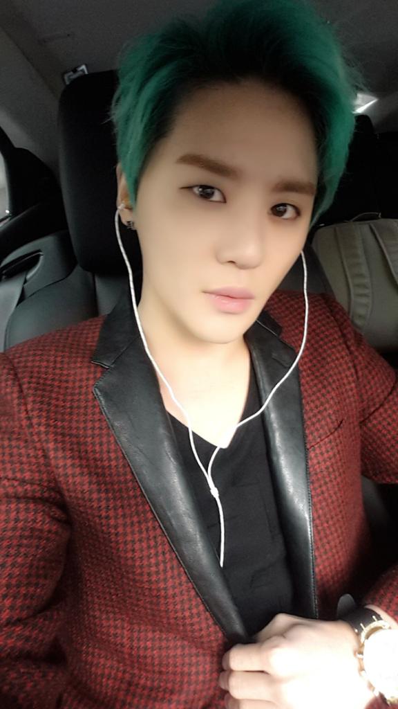JYJ金俊秀演歌舞劇的時候也有染亮麗的綠色