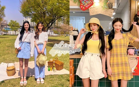 單純利用色調也是個不錯的方法,乍看之下兩個人穿得很相似,但其實身上沒有一個單品是重複的,一個比較運動街頭風,另一個比較女性可愛,適合兩個個性相差比較多的姊妹。