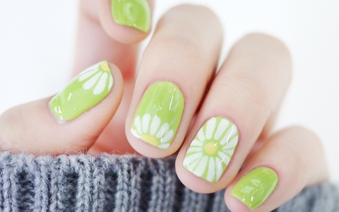 顯白又清爽!指甲仿佛都散發著雛菊的陣陣清香♡~韓妞牛油果小雛菊美甲教程