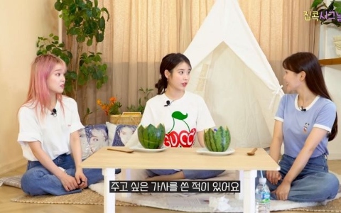 公開了IU 和 OH MY GIRL 的成員孝定和勝熙談話的模樣,IU 在影片中羞澀的透露自己非常喜歡 Oh My Girl 團員們。