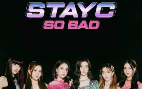 Image Source | 온라인 커뮤니티STAYC 的專輯封面上,深紫色的背景上寫着「STAYC」組合名和「SO BAD」主打歌曲名,整張圖空空如也,無法找到 STAYC 獨有的象徵性。