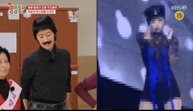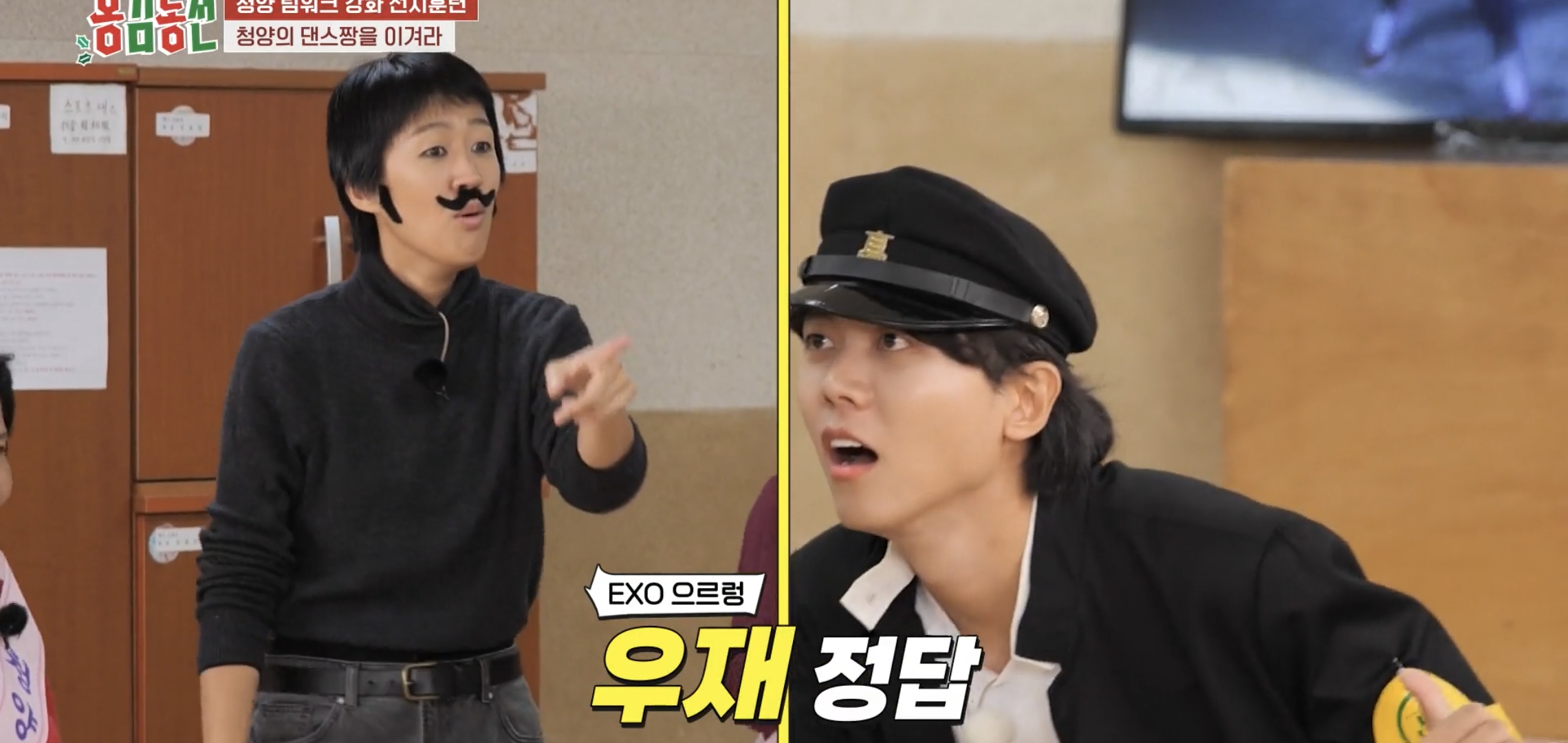 看著洪真慶手腳不協調的一邊揮手一邊踢腳,雖然一臉狐疑仍舊正確無誤回答出Red Velvet的《Red Flavor》嚇傻其他成員,沒料到他居然憑這樣的舞技就能猜中歌曲。