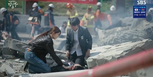 雖然人都還活著,但徐宇鎮象徵醫生生命的手掌遭鋼筋貫穿,而鋼筋下方則貫穿了老師的胸部,為救兩人性命,只能選擇冒著損傷神經的風險將鋼筋從徐宇鎮手上拔起。