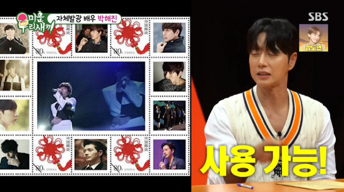 朴海鎮因為出演SBS戲劇《來自星星的你》在海內外都收穫巨大人氣,尤其是在中國更是獲得無數觀眾的喜愛,更成為第一個在當地發行郵票的韓國人,在中國更稱他為「側臉男神」。