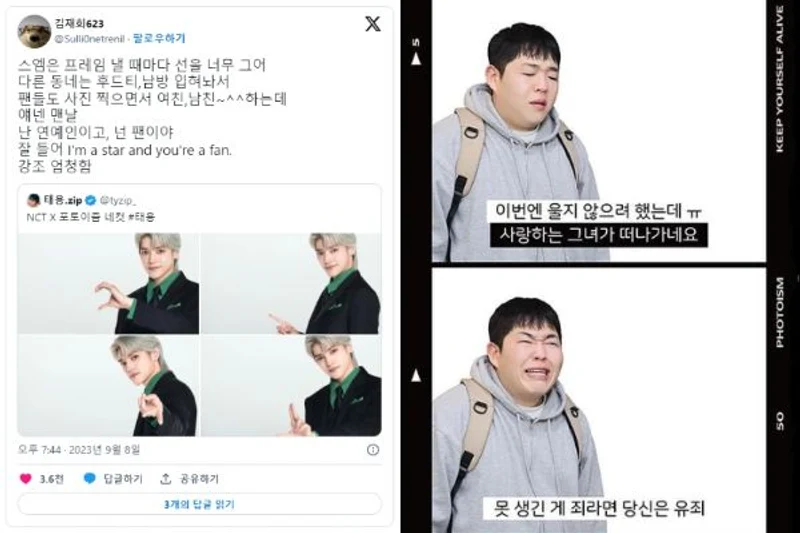 文章中放上了Twitter上推文的链接,该推文中放上男团NCT成员泰容的应援相框并写下“SM每次推出应援相框时,都把界线画得太清楚了,其他公司都是连帽T或是衬衫之类的,粉丝们拍照的时候都会一边拍一边演出男女朋友的氛围”