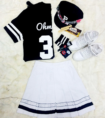 最後... 黑色上衣 + 黑色短裙 一雙白鞋完全打破了全黑的壓抑感~