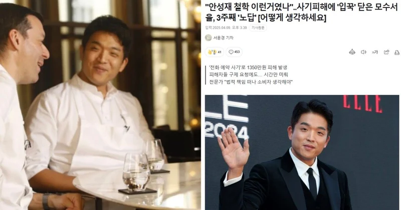 近期,不僅韓國知名廚師白種元名下公司The Born Korea爭議不斷,旗下品牌產品陸續出包。跟白種元一起出演Netflix料理實境秀《黑白大廚》而爆紅的評委米其林三星主廚安成宰也陷入爭議。所經營的高級餐廳「Mosu Seoul」,不僅捲入辱罵員工爭議,還被爆出有顧客因撥打預約電話而遭遇詐騙,損失從數十萬到數百萬韓元不等。但目前『MOSU Seoul』對於受害者的補救行動卻十分消極。