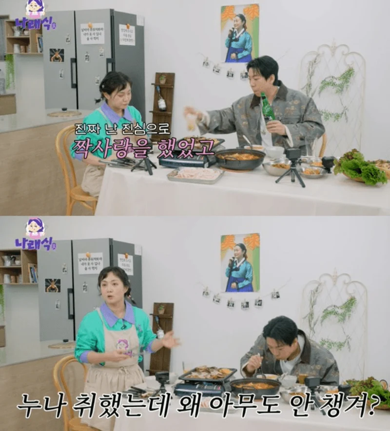 朴娜勑更自曝:「我以前真的喜歡過世燦。」原因居然是——14 年前他剛從軍隊休假、來《Comedy Big League》MT 場地打招呼時,她醉倒在地,沒人管她,結果梁世燦一句「姐姐喝醉了,為什麼沒人照顧?」便把她背回房。她笑稱:「這不是罪嗎?這根本是讓人心動犯罪。」