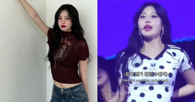 當天她正在表演,一如往常跳著俐落舞步、做出標誌性的冷峻表情,突然間似乎覺得背後哪裡怪怪的。她伸手往後一摸,下一秒竟直接把卡在衣服裡的肩墊抓出來,然後超自然地往舞台邊一丟,完全不慌、不停、不影響演出。