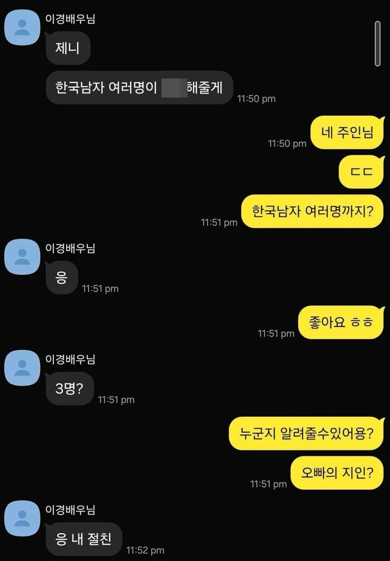 A 女士在文中表示,她與李伊庚最初是透過 IG 私訊(DM)開始聯絡,之後轉為 KakaoTalk 聊天,期間確實出現帶有性暗示的對話。她坦言,初期自己也曾對部分對話有所回應,但隨著時間推移,內容與語氣逐漸失控、程度加重。