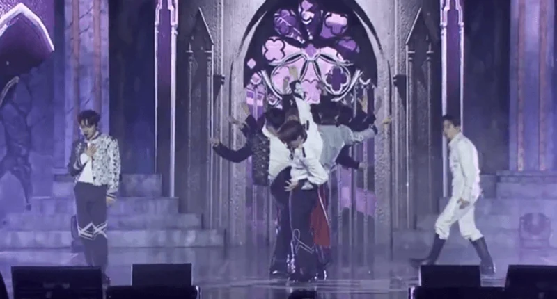 42.看MV有點無聊,但舞台好太多,歌也更好聽,中心的Kai瘋了