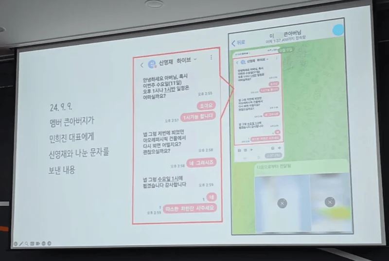 針對ADOR經營層、大股東及部分媒體所提出的「NewJeans挖角說法」,金善雄再度反擊,稱閔熙珍近期在專業律師團隊協助下掌握關鍵資訊,發現整起事件實際上是某名NewJeans成員的家屬,與特定企業人士勾結,涉及「股市干擾與操縱」的共謀行為。