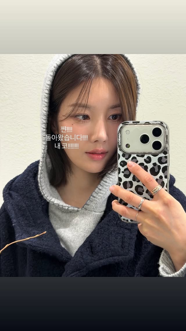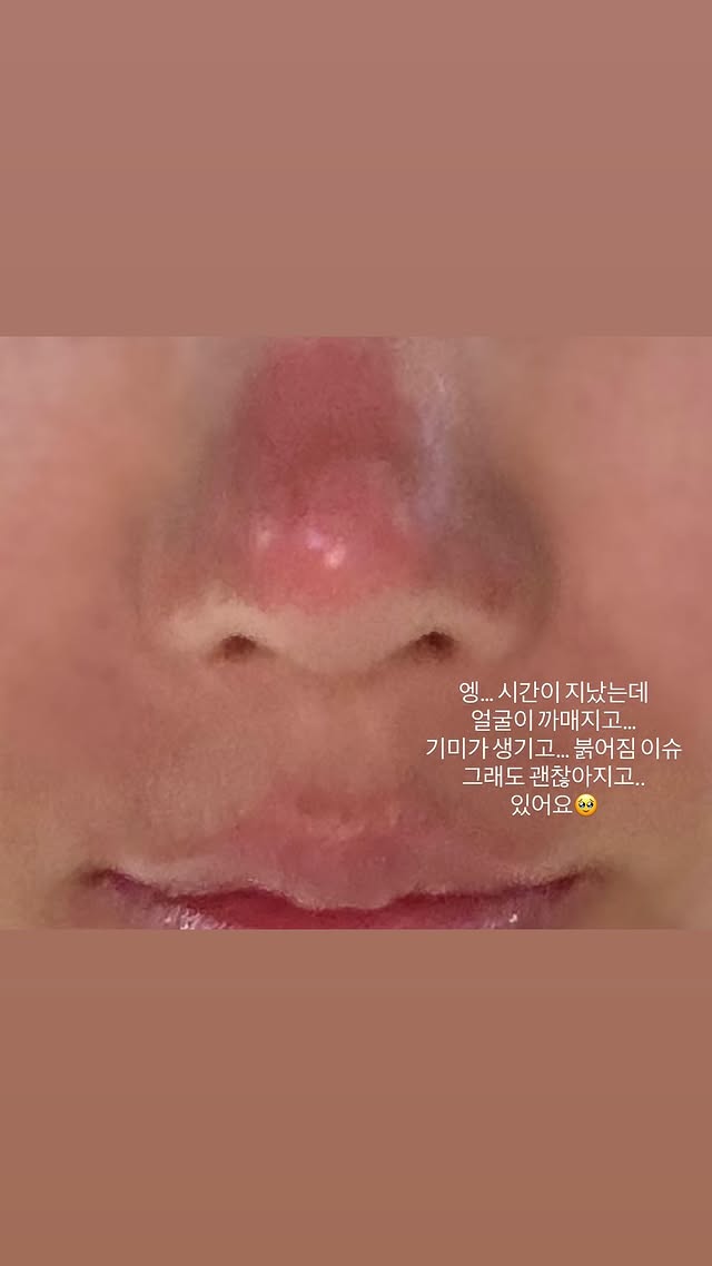 曝光的照片中可見,權恩妃的鼻子與上唇部位明顯泛紅、受損。她表示,這段期間每天都按時擦藥、盡量遮擋,但隨著時間推移,臉部仍出現變黑、長斑與泛紅的情況,所幸經過持續治療,「狀況正在慢慢好轉」。她也在最後一張照片中開心寫下「我的鼻子回來了」,曬出接受皮膚科治療後逐步恢復的模樣,報平安之餘也讓粉絲鬆一口氣。