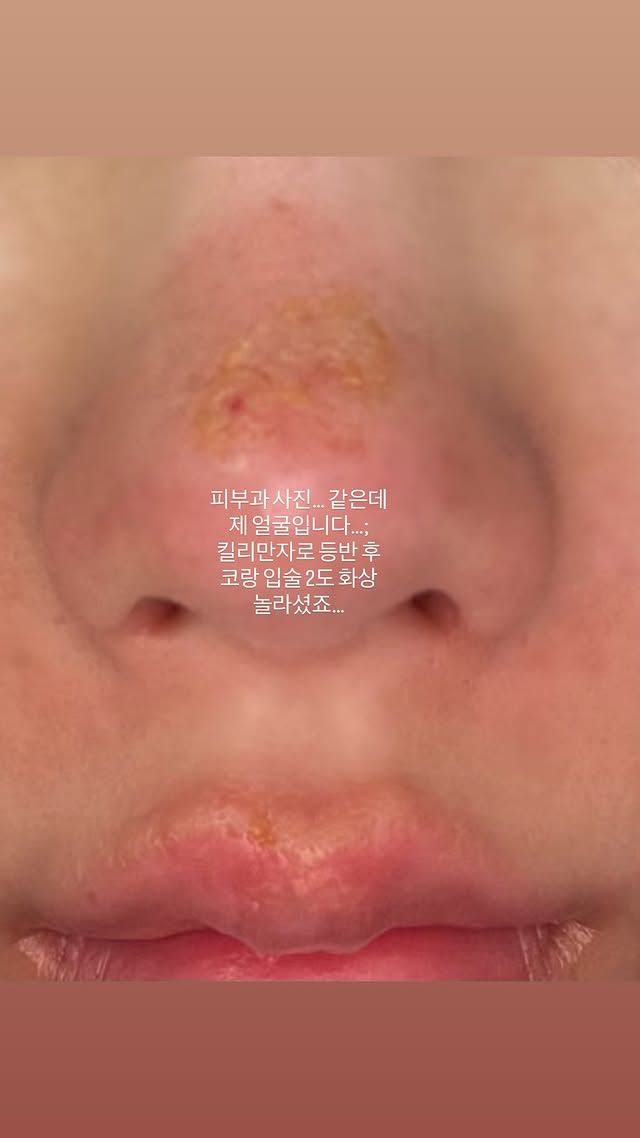 歌手 權恩妃 近日自曝在登山行程後臉部出現二度燙傷,引發粉絲關心。她於3日在個人IG分享多張照片,直言「看起來像皮膚科病例照,但這真的是我的臉」,並透露在攀登 吉力馬札羅山 過程中,臉部不慎出現二度燙傷。