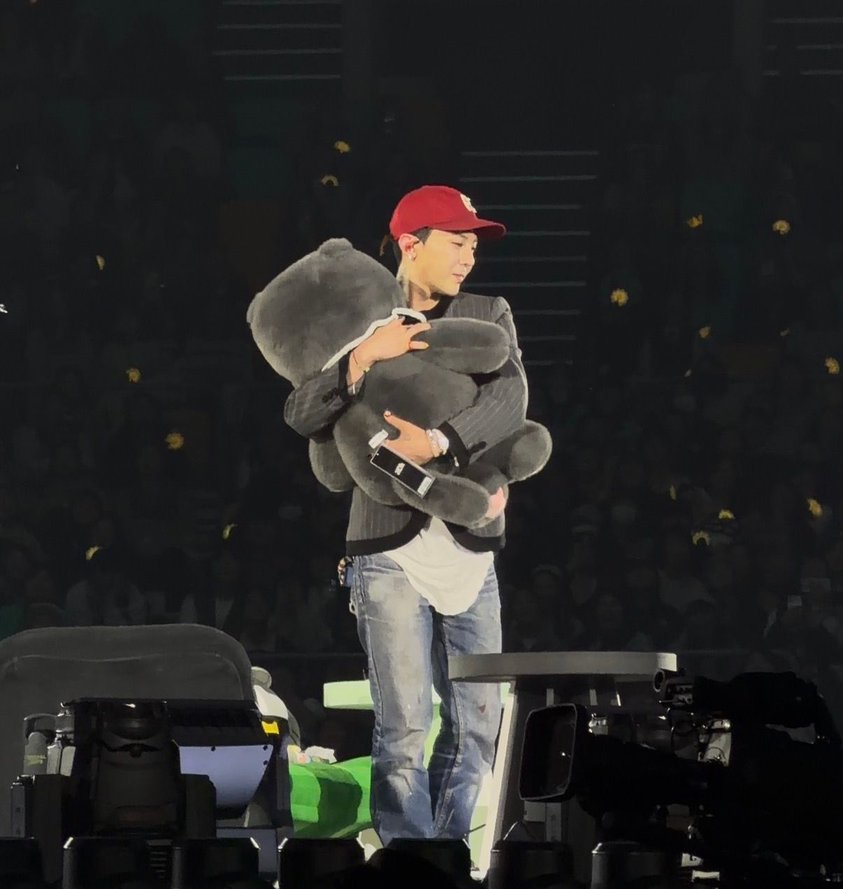 見面會上,GD驚喜翻跳女團 ILLIT 的〈Not Cute Anymore〉舞蹈,但他並未照表操課複製原版動作,而是走誇張、搞怪又帶點「裝可愛」的路線,明顯是想逗樂粉絲。現場觀眾笑聲不斷、尖叫聲連連,氣氛相當歡樂。