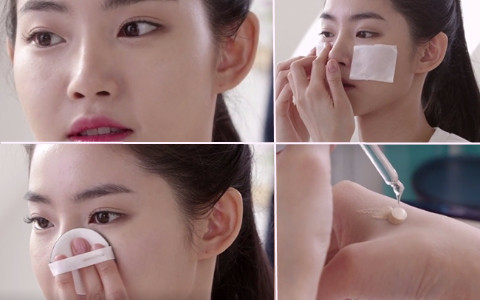 1.基礎的保濕護膚後,用保濕精華或者水乳充分浸濕化妝棉,貼在乾燥的肌膚部位。給緊膚做個妝前保濕面膜~~