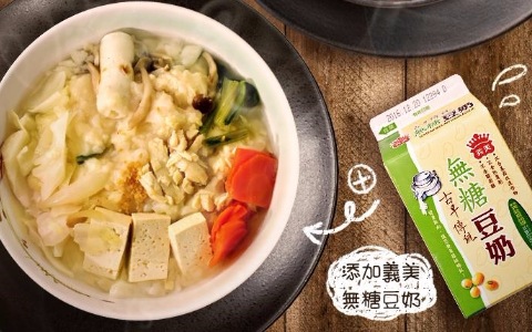 No. 3 雞肉野菜豆乳鍋 用義美豆漿當湯底你敢信? 蔬菜多、熱量又超低(只有279大卡),這樣只要79元也太佛心(✪ω✪)